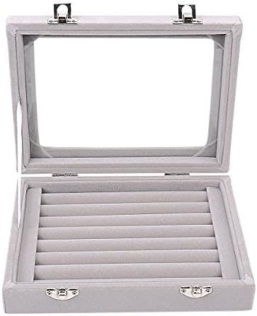 Ivosmart 7 Slots Velvet Glass Ring Jewellery Display Storage Box Tray Case Holder Earring Organizer Stand Grey