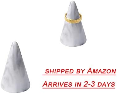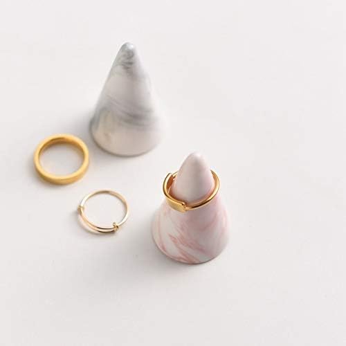 KESHENG Modern Marble Ring Holder Tower Ceramic Cone Shape Decorative Display Stand for Jewelry Ring/Wedding Ring Grey&Grey