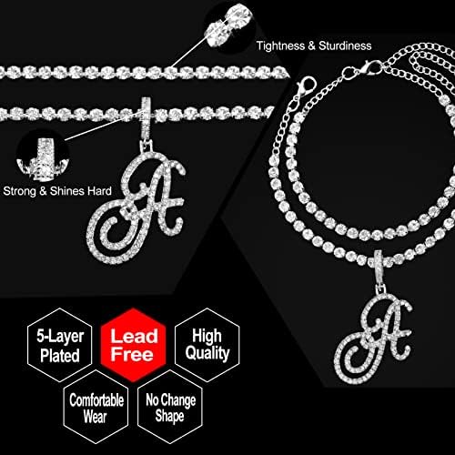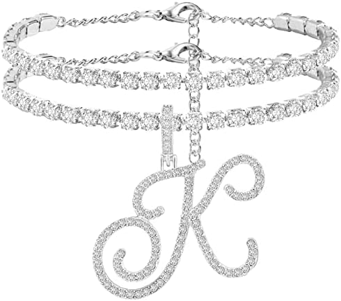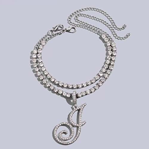 KKJTDS 2pcs Initial Ankle Bracelets for Women Teen Girls Silver Cursive Initial Pendant Tennis Chain Anklet for Women Bling Foot Anklets Jewelry Gifts
