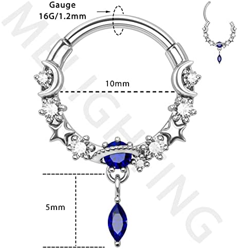 Melighting 16G Septum Rings Dangle Septum Jewelry with Blue Planet Clear CZ Surgical Steel 316L Star Daith Earrings Moon Helix Earring Nose Rings Piercing for Women Men