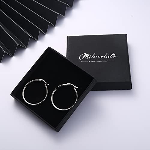 Milacolato 925 Sterling Silver Hoop Earrings for Women Girls High Polished Beveled Edge Hoop Earrings Huggie Earrings 18K White Gold Plated Lightweight Click-Top Hoop Earrings