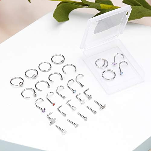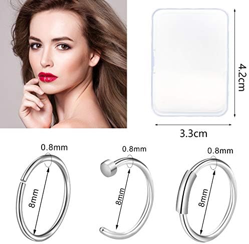 ONESING Nose Rings for Women Nose Piercing Jewelry Silver Nose Rings Studs 20G Surgical Nose Rings Hoops Nose Rings L Shaped Studs Screw Stainless Steel Nose Piercings for Women Men
