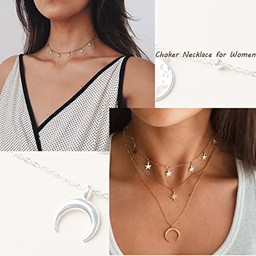 RINHOO FRIENDSHIP 4-6Pcs Multiple Layered Necklaces for Women Choker Necklace with Moon Star Coin Gold/Sliver Chain Necklace Jewelry for Women Girls